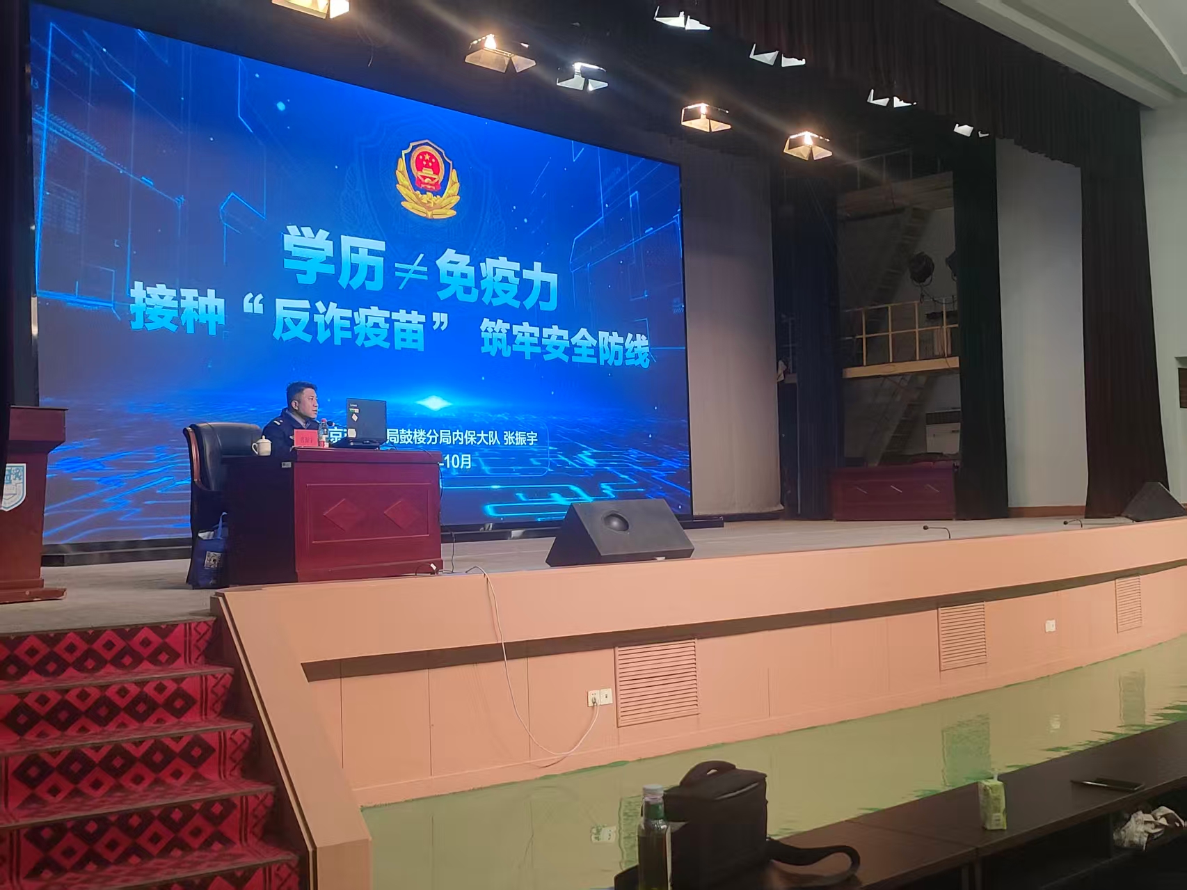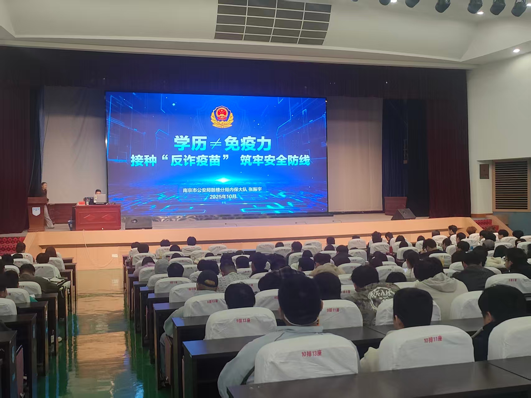 为提高继续教育学生防诈反诈能力,全方位保障学生生命财产安全,打造平安和谐校园,10月29日,保卫处联合继续教育学院邀请南京市鼓楼区公安分局内保大队副大队长张振宇警官为继续教育学院航空班和土木工程学院自考助学2025级新生开展防诈反诈专题讲座。