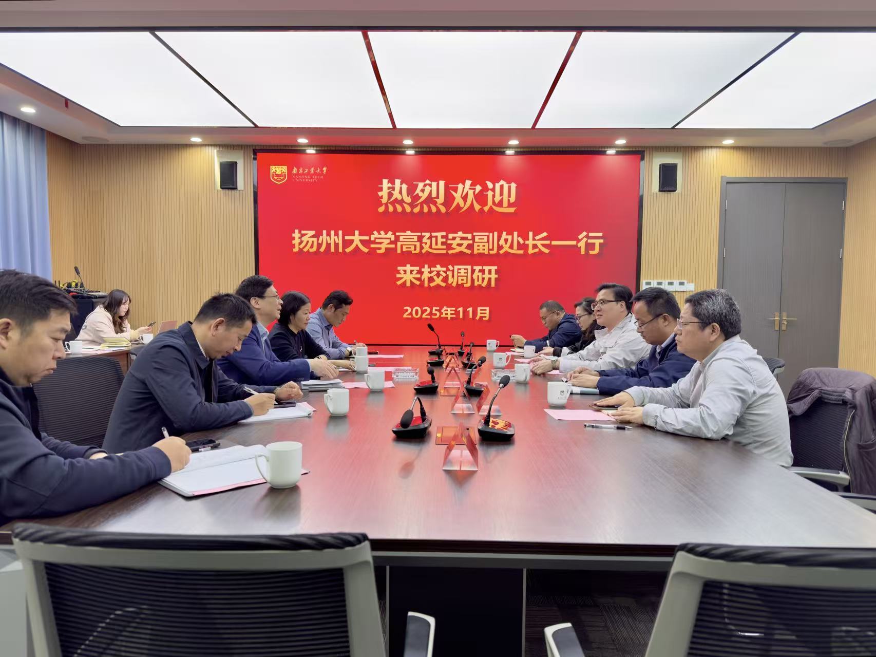 11月13日上午,扬州大学保卫处副处长高延安一行来我校调研交流,保卫处处长季宜敬主持座谈会。