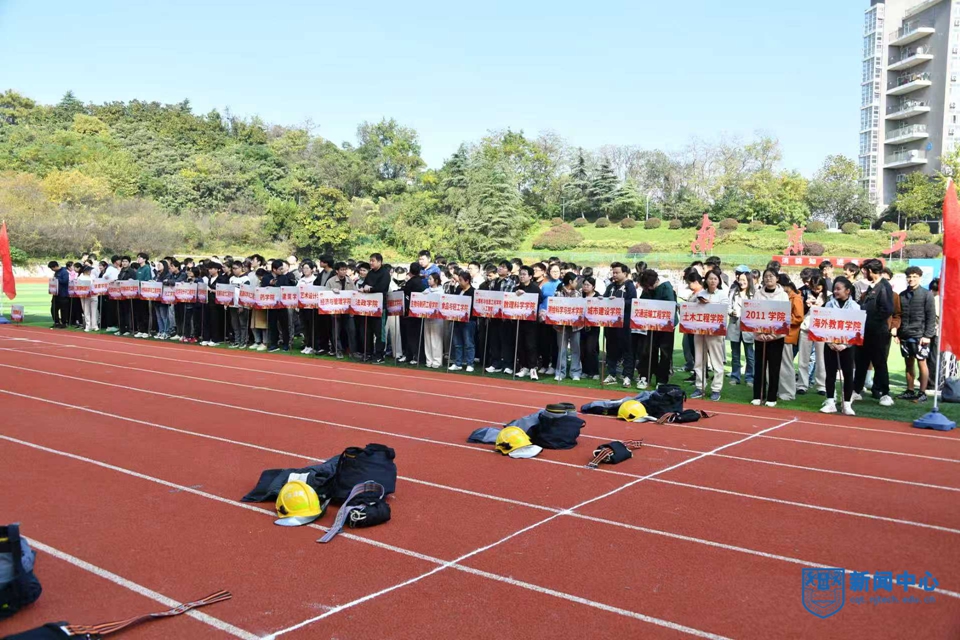 11月12日下午,由保卫处、后勤保障处、工会、体育学院联合主办的第九届消防运动会在江浦校区行健田径场举行。副校长刘大卫、高新技术开发区消防救援大队副大队长陈楚、顶山派出所驻校民警张峰林出席开幕式。开幕式由保卫处处长季宜敬主持。