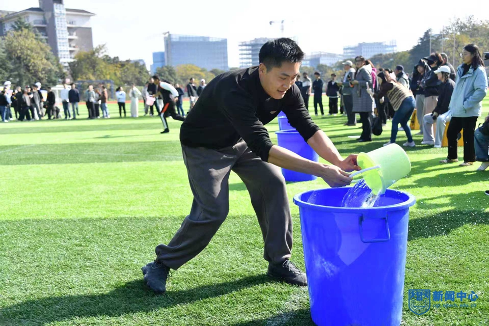 刘大卫在开幕式致辞中指出,学校始终将消防安全工作置于重要位置,坚决贯彻落实习近平总书记关于安全发展的重要指示精神,严格按照上级部门的工作部署,以高度警觉的态度扎实推进重大火灾风险防控与化解工作。他表示,消防运动会作为校园安全月的重要组成部分,既是普及消防知识、提升应急自救能力的重要平台,也有力促进了各单位之间的安全协作与团队凝聚力。刘大卫强调,各部门、各单位要进一步强化消防安全主体责任意识,持续开展风险排查与隐患治理,不断深化消防宣传教育工作,切实筑牢校园安全防线,保障校园安全形势持续稳定。陈楚对我校消防安全工作成效予以充分肯定,并表示将继续全力支持学校事业发展,做好相关服务保障。后勤保障处党委书记陈娟就本届消防运动会的组织筹备工作作了汇报。活动现场,高新大队自贸区消防救援站的官兵还进行了快速着装、高喷车出水等消防救援项目演示。