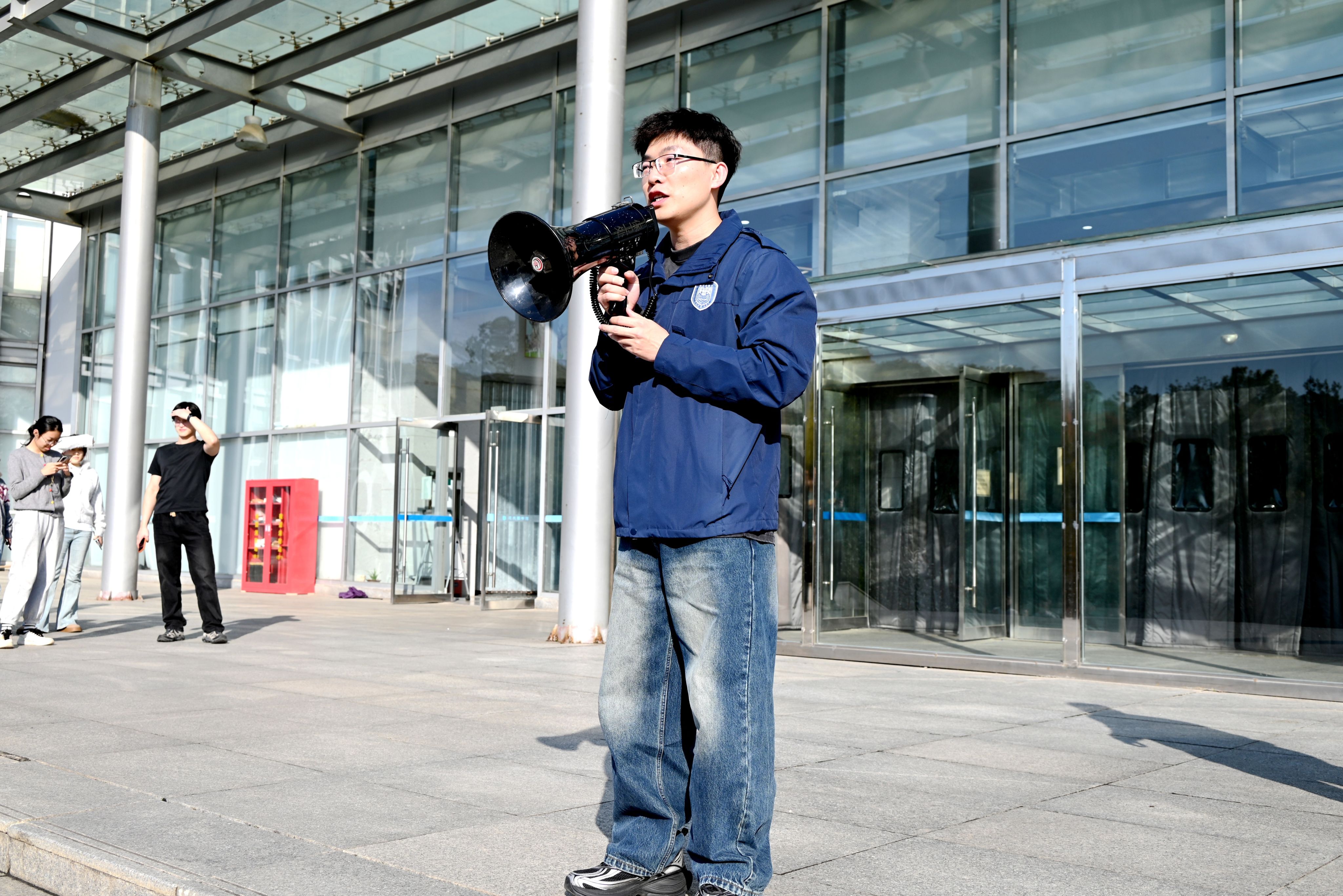 下午两点半,保卫处工作人员点燃发烟罐,模拟火警信号和应急广播的急促响起,馆内读者在工作人员的组织下,迅速并有序撤离至安全区域,随后消防卷帘闸门缓缓落下。保卫处刘世伟老师在逸夫图书馆正门外广场开展有奖问答环节,吸引了众多师生读者。培训结束后,现场进行了手提式干粉灭火器的使用实操演练,借助模拟火情,现场演示了标准的灭火操作流程。大家积极参与、认真操作,展现出良好的消防意识与实践热情。参与师生普遍反映,此次实训内容实用、体验感强,对提升消防应急意识具有积极意义。