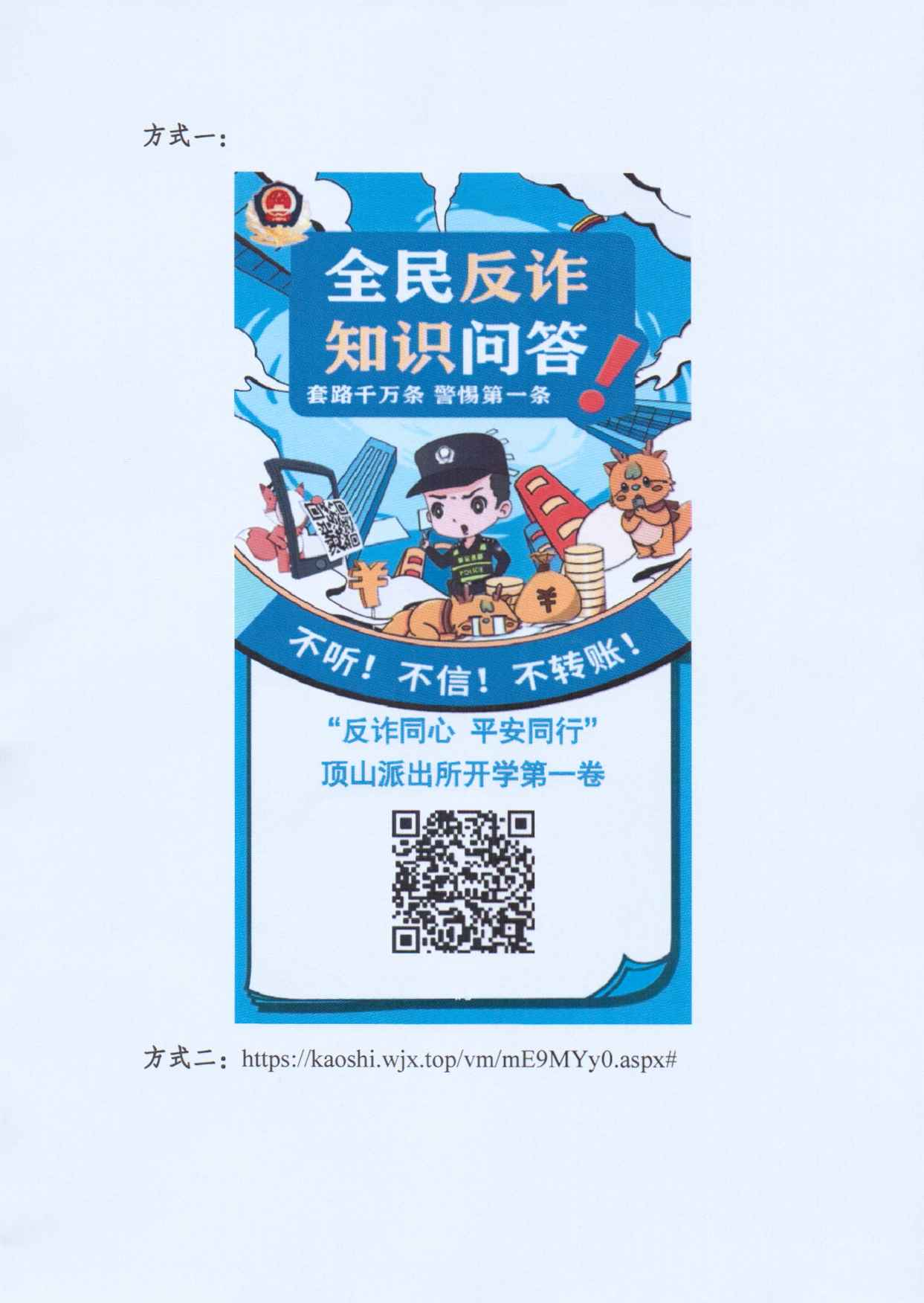 1.参与途径:学生通过扫描下方专属二维码或点击指定链接,在线完成反诈知识问卷。