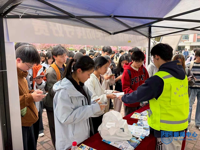 为持续推进“反电诈宣传月”工作,3月27日,保卫处联合顶山派出所、中国电信浦口分公司,在亚青村学生宿舍区开展反电诈专题宣传活动。江北新区公安分局内保支队叶江山警官、保卫处副处长徐东与同学们面对面交流,活动吸引近千名师生踊跃参与。