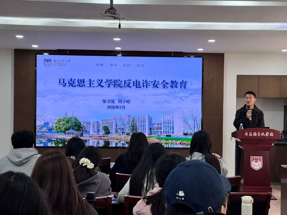 为切实增强大学生防范电信网络诈骗的意识与能力,有效防范各类诈骗风险侵入校园,保障学生财产安全与校园和谐稳定,2026年3月26日下午2点,马克思主义学院特邀学校保卫处周子皓老师,在笃学楼402会议室为全院研究生开展反电诈专题讲座。